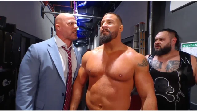 The heated exchange moved backstage, where Pearce expressed his anger towards The Vision. In a following segment, Pearce caught up with Breakker and delivered the news of his suspension directly. The confrontation reached a peak of intensity as Breakker held a cold stare in Pearce’s direction, while other WWE personalities, including Paul Heyman, became involved.