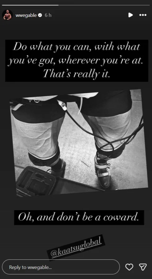 Since then, Gable has remained out of WWE action as he recovers. Recently, he shared a glimpse of his progress on Instagram Stories, posting a photo that showed him wearing a leg compression sleeve, a device commonly used during physical rehabilitation. This visual suggested that he is actively underway in his recovery process.