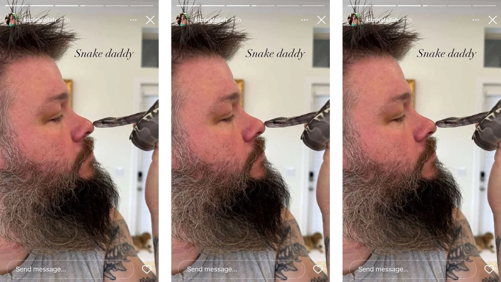 Owens’ wife shared a lighthearted moment on her Instagram story, posting a photo of Owens with their pet snake and dubbing him “Snake daddy,” injecting humor during a difficult recovery phase for the former Universal Champion.