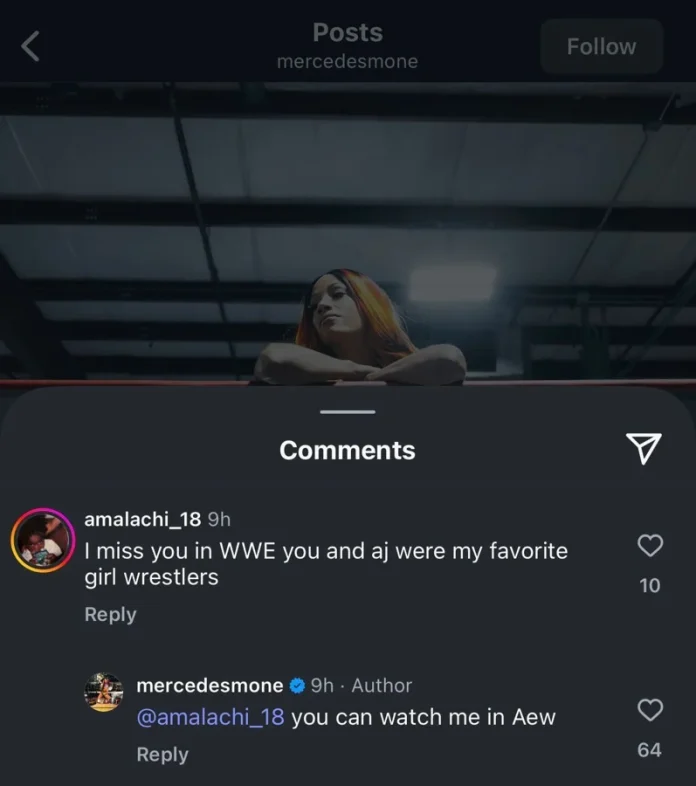 During a recent Instagram post showing her training highlights, a fan stated that they missed her and admired both her and AJ Lee. Moné’s reply was direct and left no room for speculation.