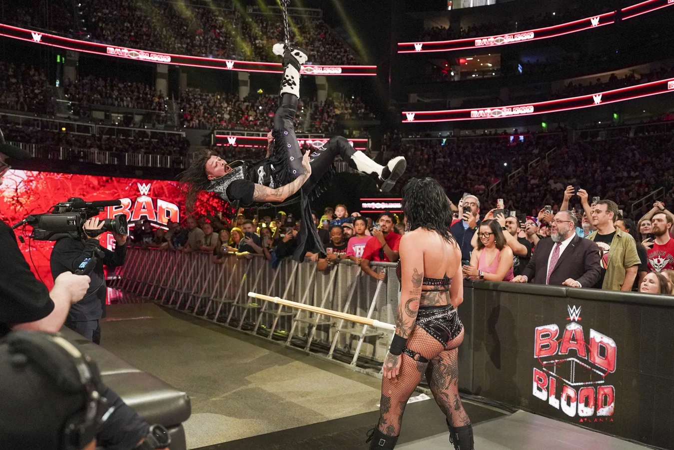 Throughout the contest, interference attempts by Robert Stone added an extra dimension of chaos, though Ripley managed to maintain focus and fend off distractions. A critical point arrived when Martinez used a kendo stick to strike Ripley’s back repeatedly, but Ripley countered forcefully, nearly reversing the tide despite the onslaught. The turning point came as Ripley executed her Riptide finisher through the table, sealing her victory in a climactic moment.