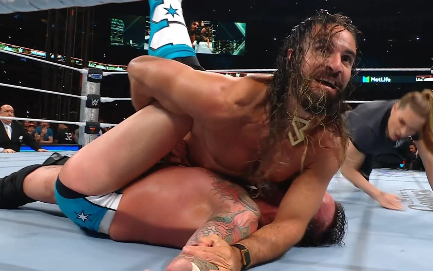 Earlier, Rollins appeared to injure his knee in a match against LA Knight at Saturday Night’s Main Event the previous month, but details about the severity of his injury remained unclear. At SummerSlam, after CM Punk defeated Gunther to claim the World Heavyweight Championship, Rollins revealed that his injury was fabricated before seizing the championship title.