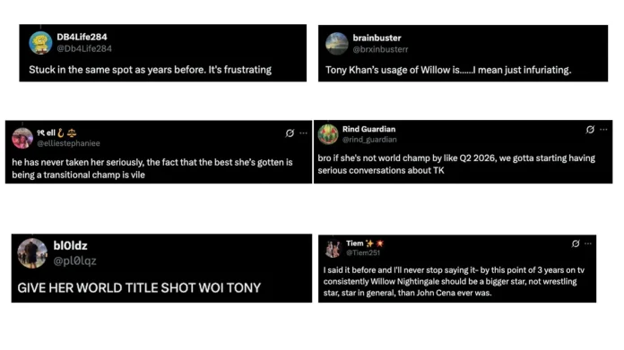 Following her title loss, Nightingale’s presence in the women’s division has been inconsistent, with several storylines failing to make a lasting impact. This decline in prominence has triggered a wave of disappointment among fans, many of whom have taken to social media to question Khan’s approach to her booking.