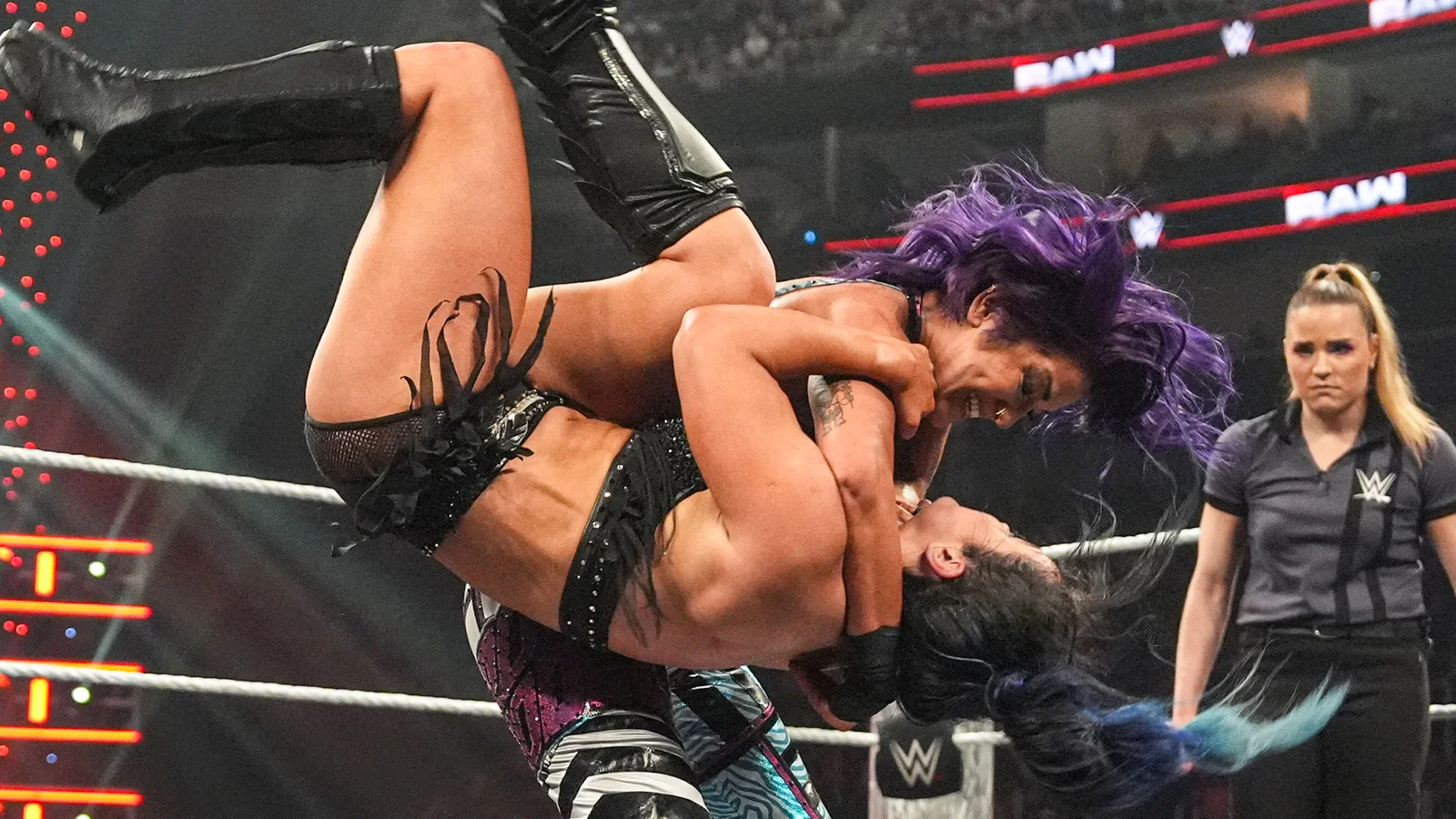 As the match progressed, Lacey Evans and Dana Brooke gained the upper hand with coordinated attacks, including Brooke’s gymnastic elbow drop and a top-rope senton splash that narrowly missed its mark. Nikki Cross intervened at crucial moments, breaking pins and mounting counterattacks. Bliss’s attempt at her signature move, Twisted Bliss, was thwarted by Brooke, who countered with a knee strike.