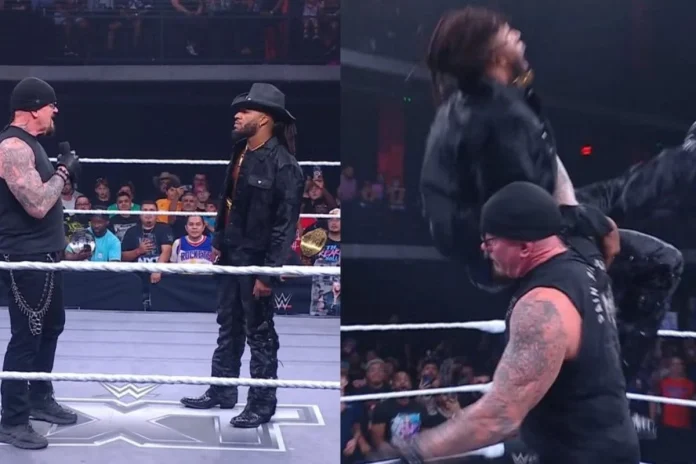 WWE Hall of Famer The Undertaker appeared unexpectedly on Tuesday’s WWE NXT episode in Houston, creating a buzz with his confrontation against TNA World Champion Trick Williams. The encounter drew attention as the Undertaker chokeslammed Williams, asserting his dominance in the segment.